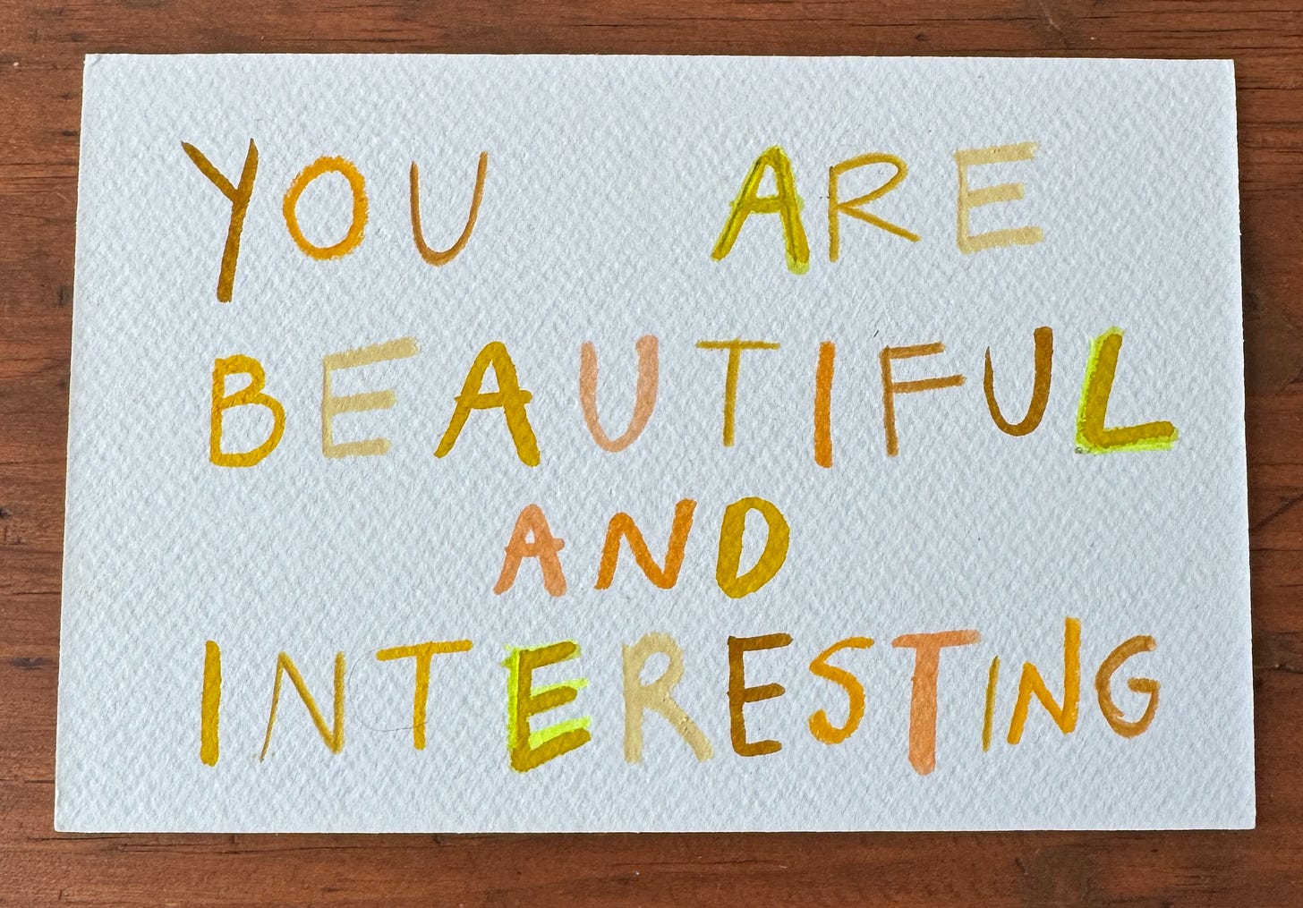 I got my first mantra in college*. On the way to parties, my friends and I would repeat to each other “You are beautiful and interesting” to combat the intimidation of older girls and the boys they guarded.